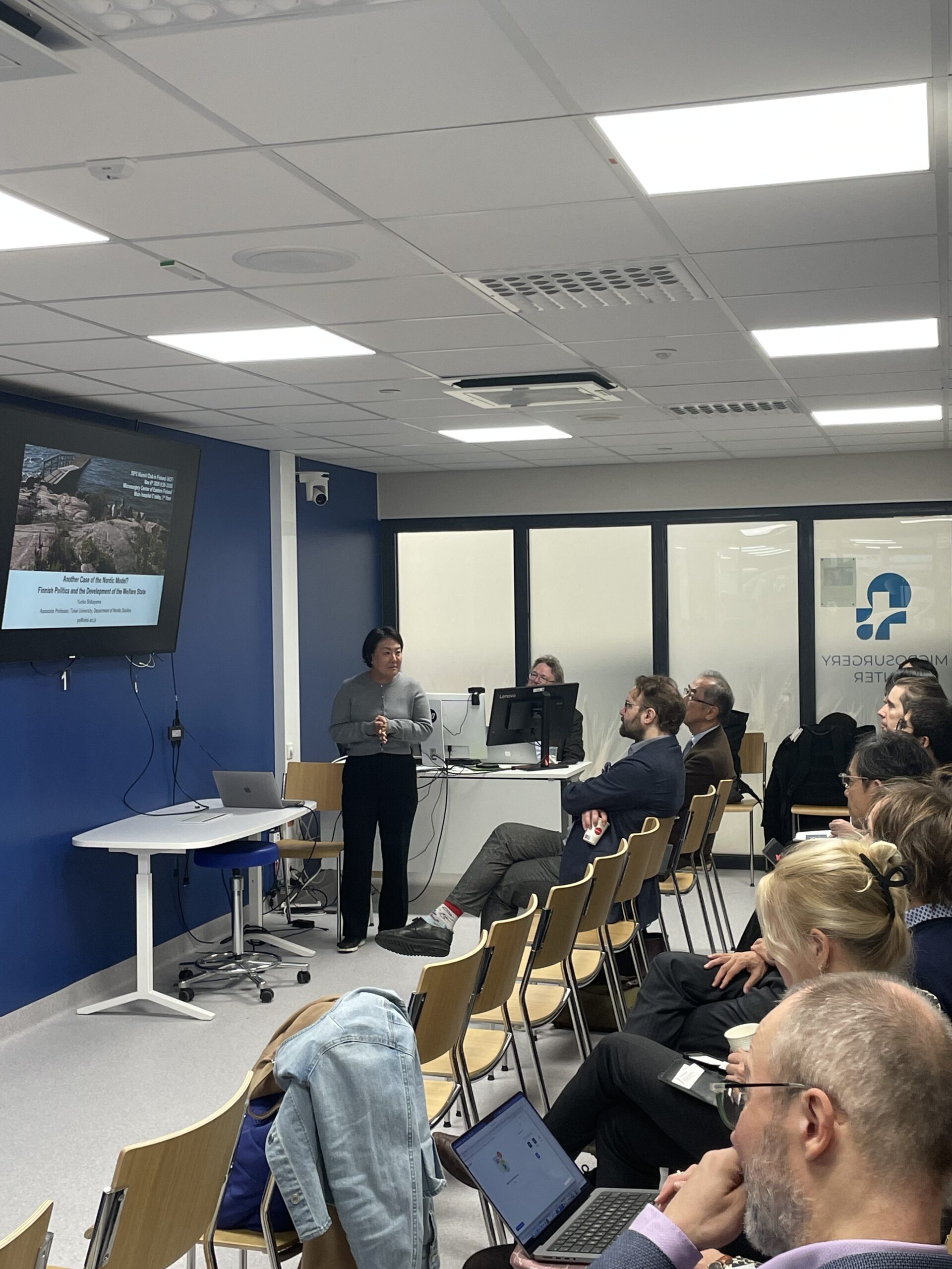 On November 6, the JSPS Alumni Club in Finland held an activity seminar in conjunction with the annual All Alumni Meeting in Finland at the Microsurgery Center of Eastern Finland in Kuopio. The morning session featured inspiring talks by Yuriko Shibayama (Tokai University) and Mikael Reponen (University of Jyväskylä). In the afternoon, we enjoyed interesting presentations by Hideaki Haneishi (Chiba University), Miho Nakamura (University of Turku), and Pauli Fält (University of Eastern Finland). The day concluded with a lab tour and demonstrations at the Microsurgery Center. The seminars were hosted by Kie Horioka (University of Oulu) and Jyrki Saarinen (University of Eastern Finland).