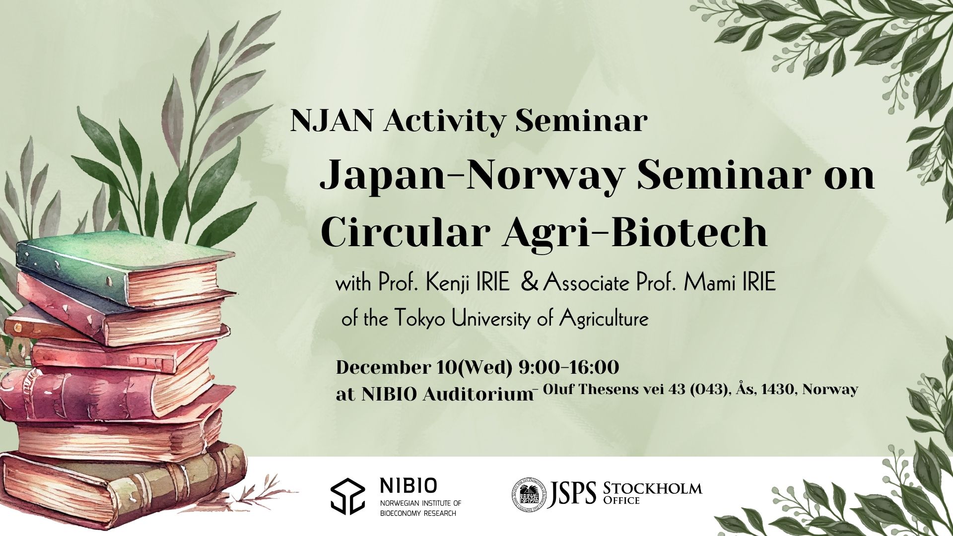 On December 10 the JSPS Norway-Japan Academic Network (NJAN) Activity Seminar will be held at Norwegian Institute of Bioeconomy Research (NIBIO) Auditorium – Oluf Thesens vei 43 (O43), Ås, 1430, Norway.